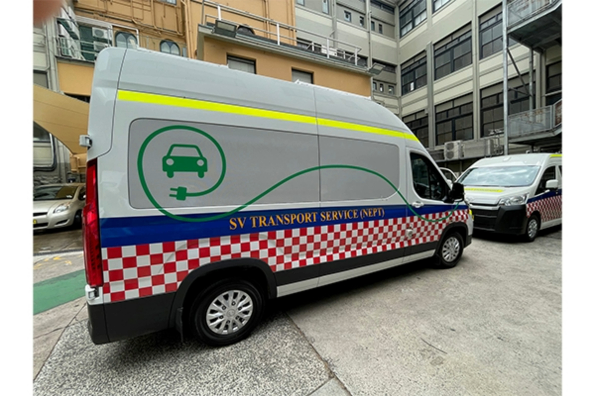 The newest addition to the fleet is an EV patient transport ambulance, which has been on the road around metropolitan Sydney, transferring patients to and from St Vincent’s Hospital. Aside from its distinctive green banner, Bob notes that patients have not been able to tell the difference, if anything, it’s a more comfortable ride.