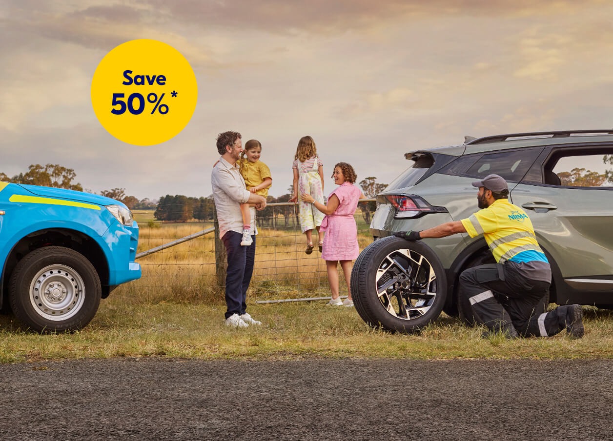 *Offer is 50% discount on Roadside assistance subscription for customers who are non-NRMA Members. Offer is not valid for existing Members with an active Membership. Applies to annual packages only. Not applicable on monthly payment plan subscription packages. Total minimum cost for Everyday Care is $68.50; Complete Care is $119.00; Ultimate Care is $149.50; all for the first 12 months. Revert to full price at renewal. Offer valid from 15 January to 30 January 2026. Not available for existing Members who’s subscription is due for renewal during or prior to the promotional period. Not valid for My NRMA or “Join on Road” roadside assistance products or in conjunction with any other offer. NRMA reserves the right to terminate the offer at an earlier date and at its discretion.