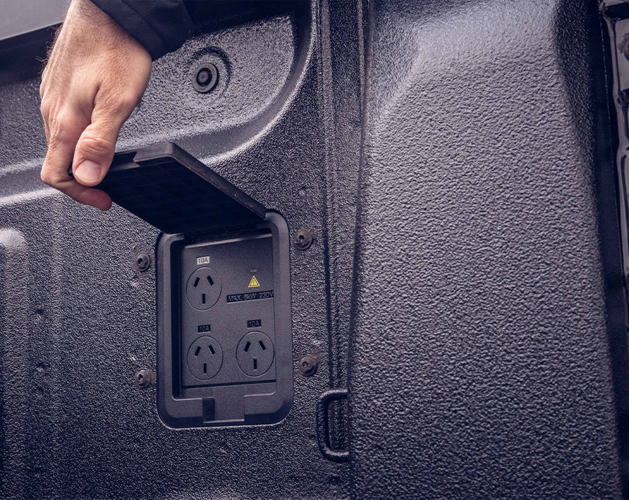 Further back again, the Shark offers a thoughtful tray space, with decent proportions that have taken a minor hit for the sake of interior space. There are six tie-down points, rear tray lighting, a damped tailgate, and three household power outlets each with 10 amps of available output. There’s no integrated step in the tub – ala Ford Ranger and Kia Tasman – and the BYD’s tailgate is damped on the way down but not assisted coming back up.