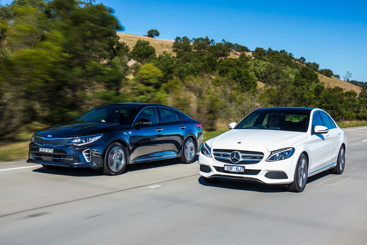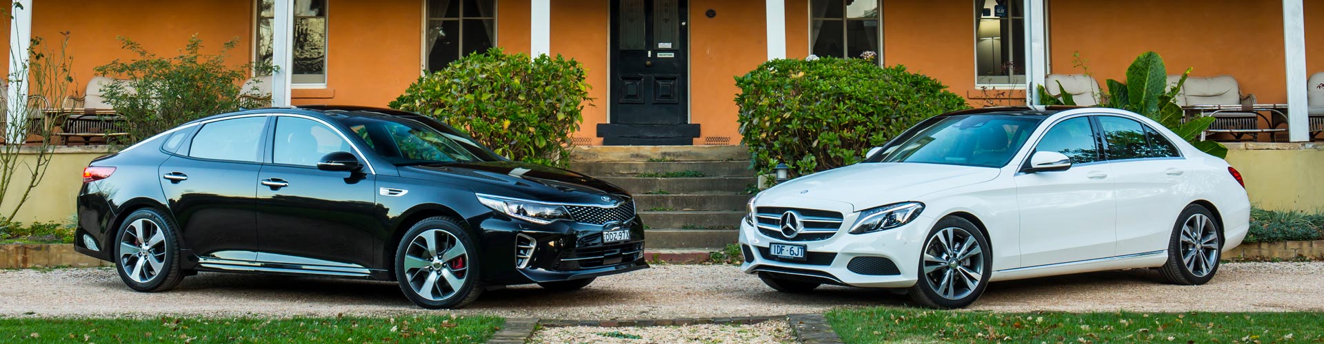 The gap between luxury cars and top-spec 'regular' cars is closing. Take the Kia Optima GT and the Mercedes-Benz C200. They have the same sized engine (2.0-litre turbo four-cylinder), similar outward appearances, and both won their respective categories in the 2015 Australia's Best Cars awards. The only obvious disparity is price: the Optima GT comes in a tad under $50,000 drive away, while the Merc is approaching $70,000. Given the improvements in Korean build quality, is the $20,000 difference between the two justified?