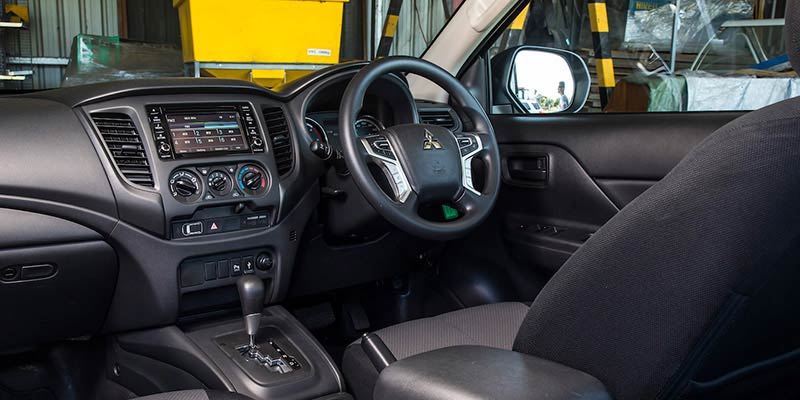 Powering the Triton is Mitsubishi’s 2.4-litre turbo diesel engine, which debuted in 2015. With outputs of 133kW and 430Nm, it’s matched to a six-speed automatic transmission and delivers a claimed fuel consumption of 8.6L/100km. The base GLX’s list of standard features is meagre and owners will have to make do with a conventional key and manually-operated air conditioning. Cabin storage options include a good-sized glove box, centre console binnacle and door pockets. The Triton’s front seats are a standout – soft, yet supportive, and finished in a durable fabric. The rear seats are more upright and firmer (typical for the class), while foot space and leg room are down slightly compared to the roomier Musso.