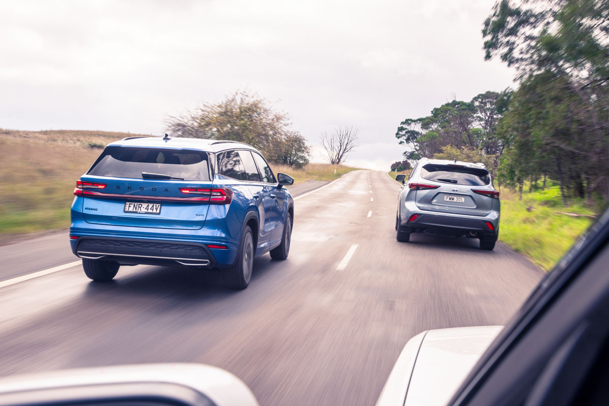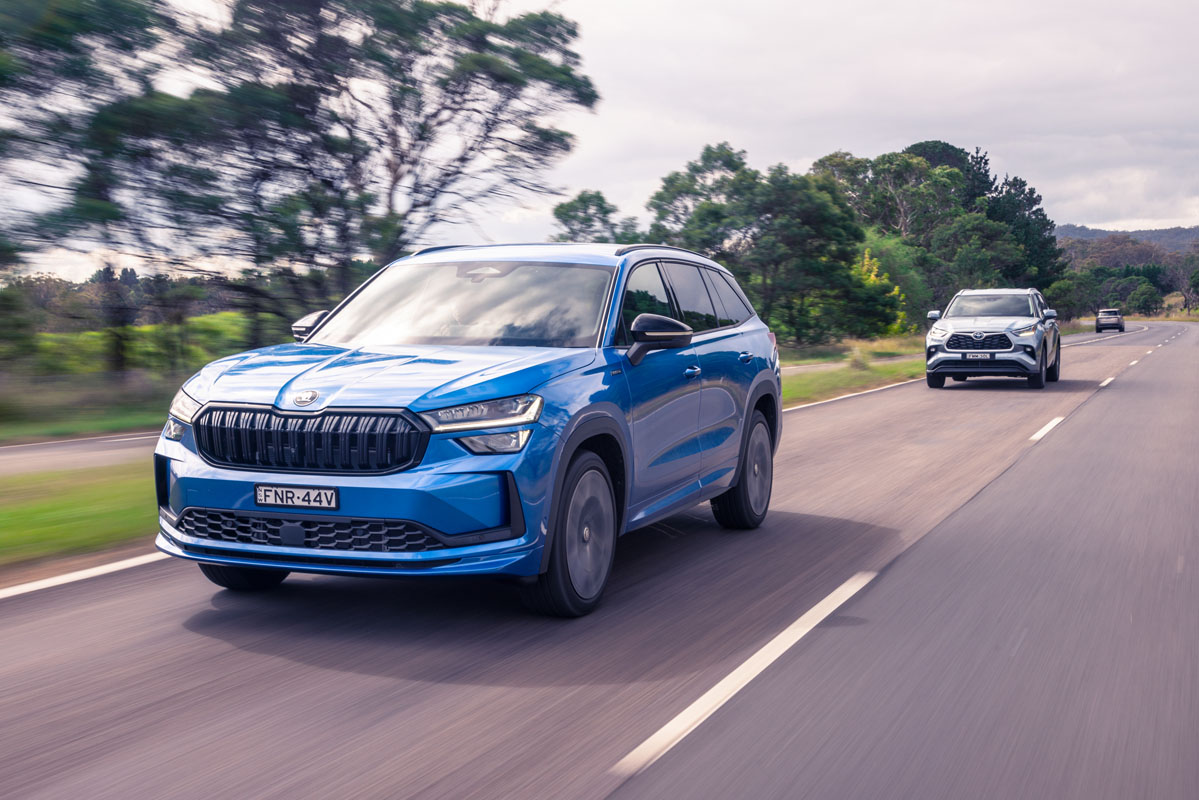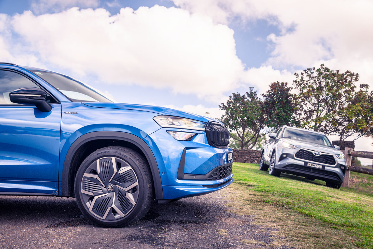 The Kodiaq claims a braked towing capacity of 2300kg braked, versus 2000kg braked for its competitors. The Kodiaq and Kluger both require minimum 95 RON premium unleaded fuel.