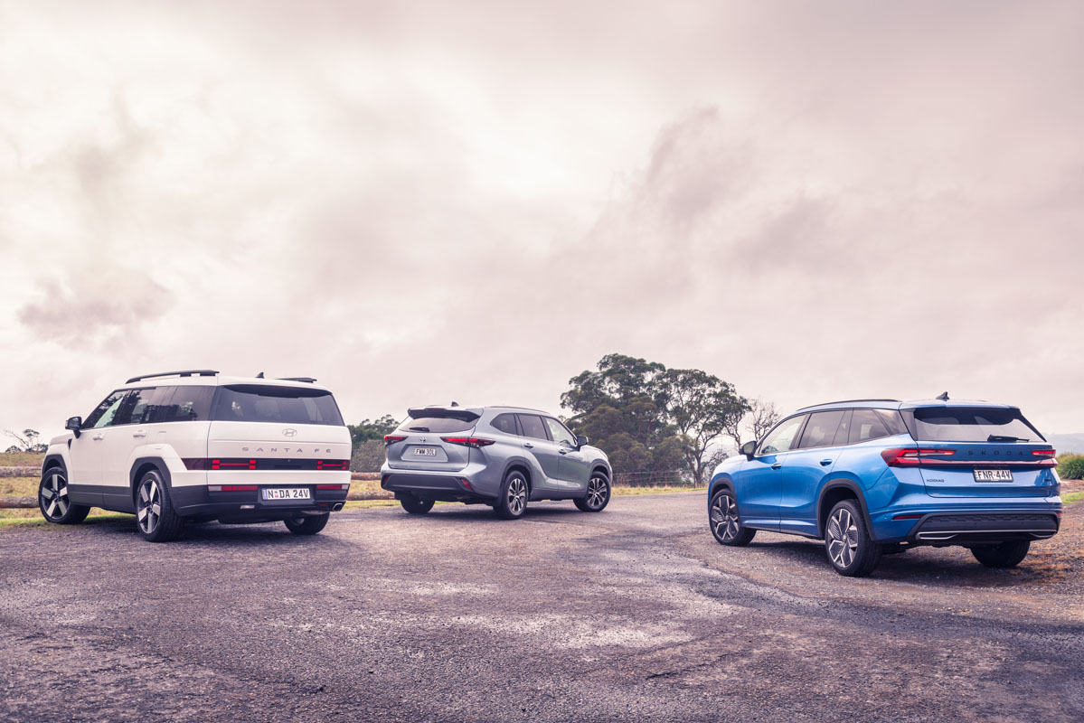 Safety is likewise well sorted across all three competitors, with a full airbag count extending to curtain airbags that cover the third row, plus the latest driver aids and safety acronyms. Each is armed with a five-star ANCAP score, but as ever, the devil is in the detail; on-road testing reveals the intervention of some safety systems varies from mild mannered (Skoda) to plain annoying (Hyundai).