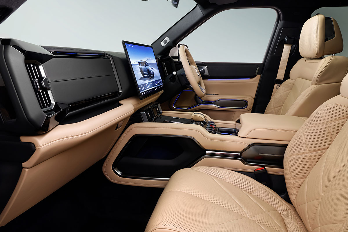 Inside, there’s the 17.3-inch central screen and 12.3-inch driver display. Apple CarPlay and Android Auto are both available, along with an 18-speaker stereo. There’s also tri-zone climate control, dual 50w charging pads, and a V2L connection.