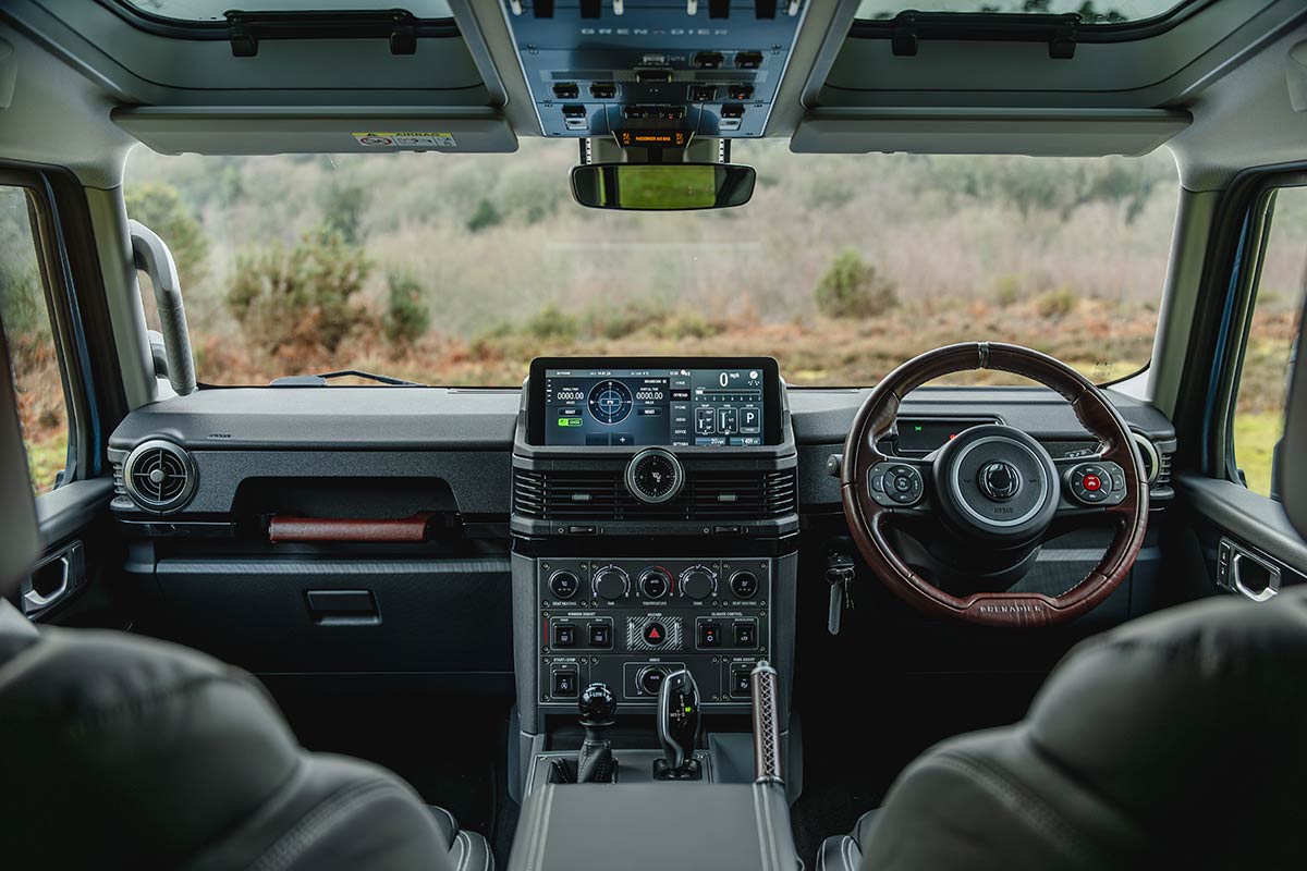 Inside, however, the Grenadier blends quality materials with hands-on tactility, complete with a dashboard centre fascia festooned in buttons, and a roof console that looks as though it has been lifted from an Airbus A380. The design details are very unique: lots of push buttons, easy access to air conditioning controls, and inherent off-road focus courtesy of an in-built compass and elevation readouts, plus an old-school low-range lever.