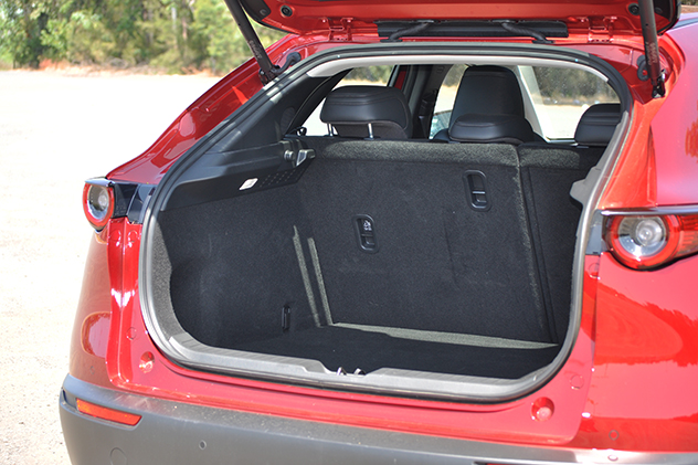Although it doesn’t deliver as much torque, the 2.0-litre engine (114kW/200Nm) in the lower grade CX-30s is punchy off the line and provides consistent power delivery, making it less erratic to drive than its bigger cousin.
