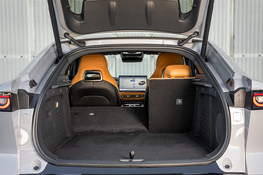 There’s also no faulting the sense of space or storage. Both rows can easily accommodate 6ft adults and the comfortable rear seats include dedicated air vents, a flat floor, centre armrest with cup holders, ISOFIX anchor points on the outboard seats, and three top-tether mounts for child seats. The boot is also impressively deep (expect around 400L of luggage space; exact litreage is unconfirmed) and pairs with a 72L frunk which looks large enough to swallow a carry-on suitcase.