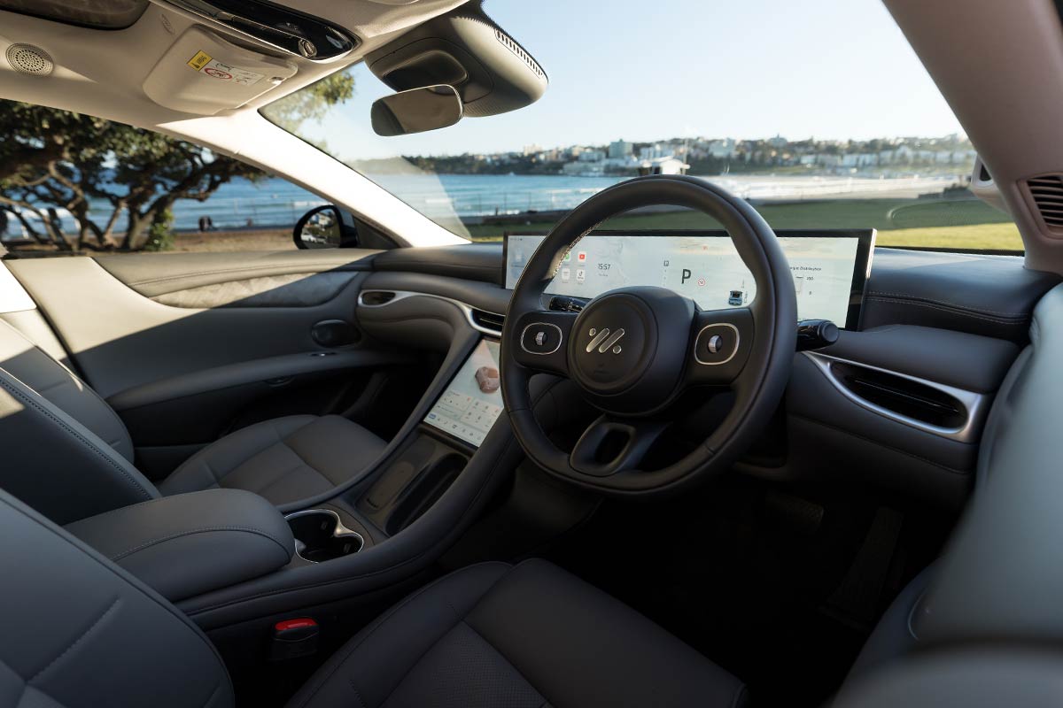 Few things are more cringeworthy than an ‘affordable’ brand attempting to do luxury, but there’s nothing try-hard about the IM models in that regard. Seat padding is thick and sumptuous and there are lashings of artificial leather all around the cabin. The curvaceous design feels futuristic but also cosy, with straight lines and corners absent except on the touchscreens. Double-glazed windows block out exterior noise effectively and the panoramic sunroof has a double silver layer for heat rejection – which, along with the ventilated front seats, makes it well-suited to the Australian climate. Electric door openers are another premium touch. Some of the plastic used on the centre console and door inlays is the only element that suggests ‘affordable’.