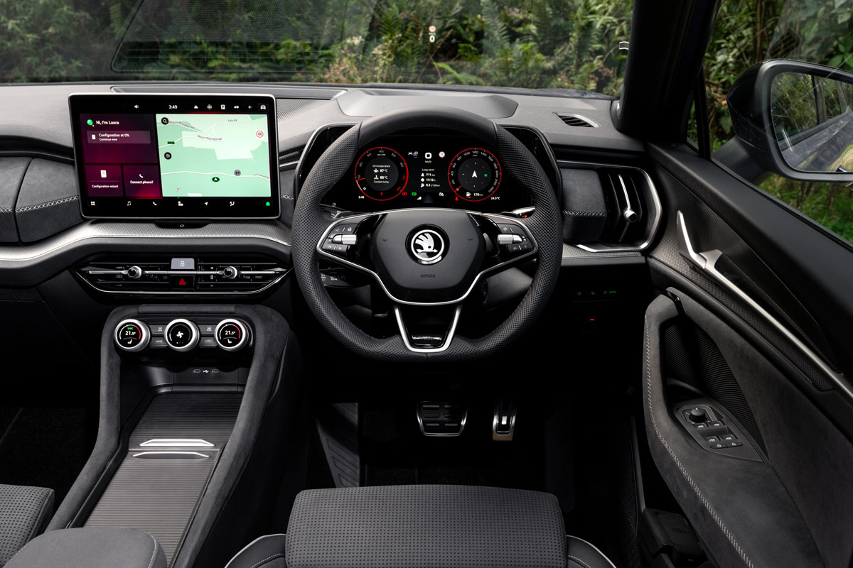 The resulting functionality and ease of navigating the Kodiaq’s brace of screens – a 13-inch centre touchscreen and a separate 10-inch digital instrument cluster – is one of the real interior boons.