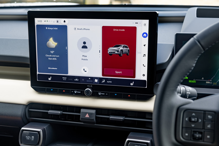 The GX and GXL models get a modest 10.5-inch central touchscreen but the GX misses out on the wireless phone charger fitted to all others.