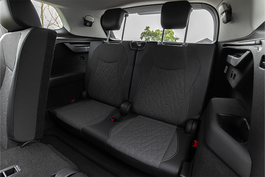 Switching to the second row reveals nicely shaped rear seats with loads of space for feet, legs and heads, plus room to comfortably fit three kids abreast. Back seat passengers are treated to a centre armrest with two cup holders and an iPad holder, two USB-C ports, and on Elegance trim or higher, heated outboard seats. The third row is a kid-only affair, although it doesn’t feel like the seats have been crammed into the space and access in and out is ample when the second-row seat back is tipped forward.