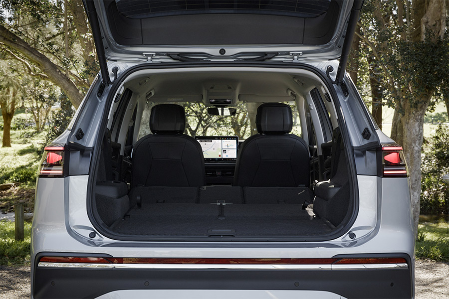 Stepping up to the 150TSI Elegance results in 19-inch alloy wheels, leather-appointed upholstery, front seats with 12-way electric adjustment and three memory settings, front seat heating/ventilation and massage function, a heated steering wheel, two heated seats in the second row, a luggage net, chrome roof rails and trim, privacy glass, premium LED headlights/taillights, and 30 colours to choose from for the interior lighting.