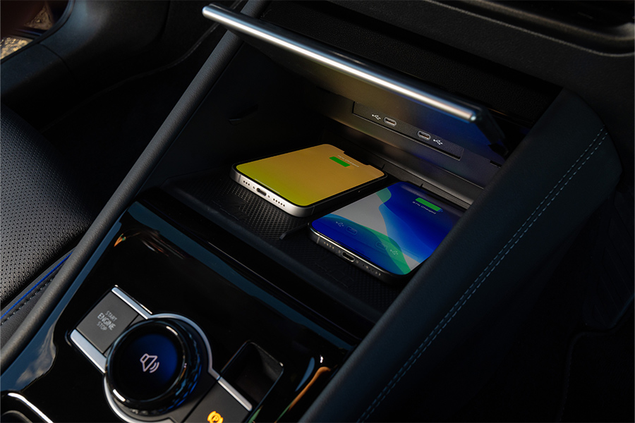 The front seats vary depending on model grade, with the two Life models getting cloth upholstery and only basic adjustment functions, while the upper-spec Tayrons have extendable panels beneath the thighs, as well as a number of luxury appointments (although that doesn’t necessarily make them superior – more on that below). On Elegance grade and up, the front seats are heated and ventilated. All models get two USB-C ports, two wireless phone chargers, and two drink holders.