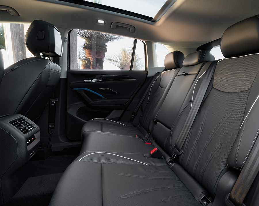 Volkswagen very consciously pursued a “Touareg lite” aesthetic for its new-gen Tiguan, and the result is one of the glitzier cabins in the segment. There are plenty of pleasant soft-touch surfaces, including carpeted door bins and cushioned faux-leather facings on the lower dash, centre console sides, and door cards — areas that are usually finished in hard plastic in rival products.
