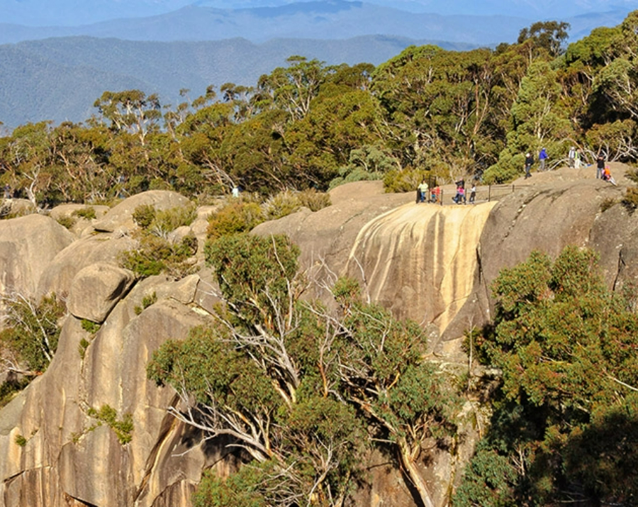 Mount Buffalo National Park is a natural playground, with more than 90km of walking tracks, 14km of marked ski trails, canoeing on Lake Catani in the summer months, sheer cliffs, granite tors, waterfalls and wildflowers.