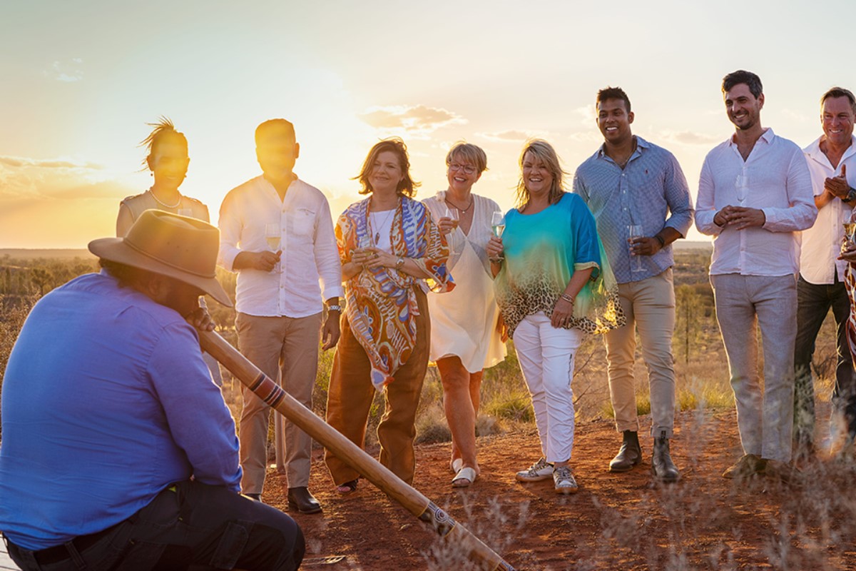 From atop a private sand dune, farewell your day by witnessing a final exquisite, multicoloured sunset against the silhouettes of Uluru and Kata Tjuta.