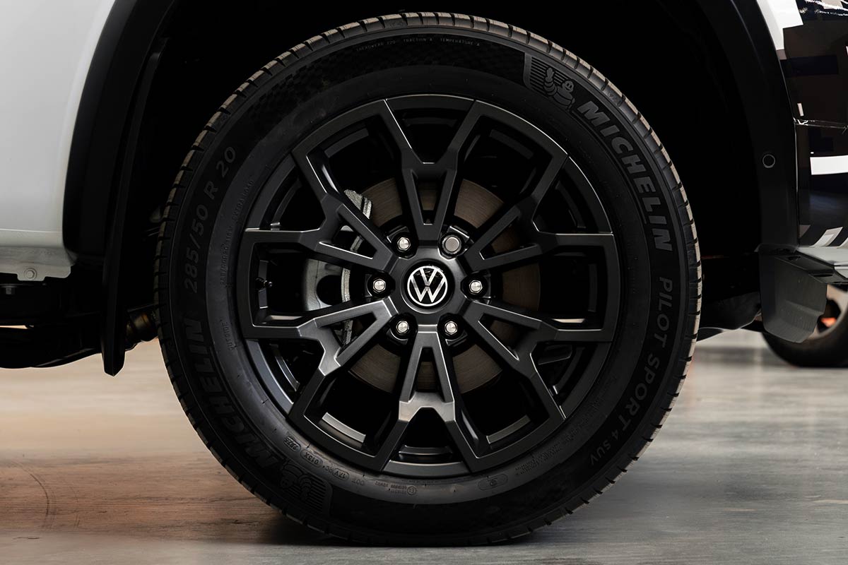 For the custom cast-flow form wheels, Volkswagen and Walkinshaw considered 38 different designs before settling on a six-spoke wheel. The 20-by-10-inch wheels are a big increase on the Amarok’s 18-by-7.5-inch items, while the tyres are now 285/50R20 Michelin Pilot Sport 4 SUV.