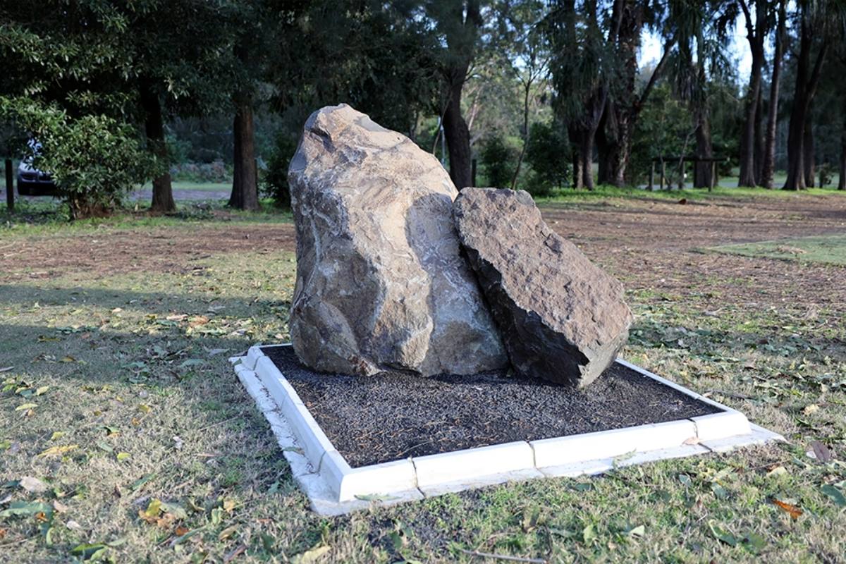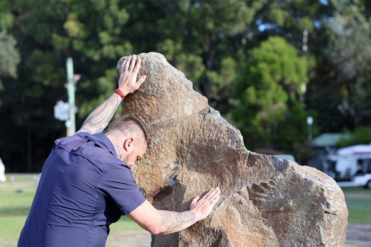 “Over the next period, I sourced some local basalt stone,” says Cory of the rocks that have now been used to honor the deceased. Two stones have been placed on the site of the mother and child, with a smaller one cradled into the larger. And for the warrior, a sturdy, powerful stone was chosen to symbolise his strength.