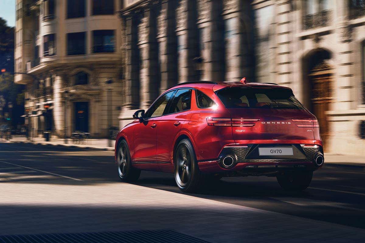 A 2.5-litre turbocharged petrol four-cylinder develops 224kW/422Nm in GV70 2.5T and 2.5T AWD trims, while, in a first for Genesis, a 2.2-litre turbocharged diesel four-cylinder outputting 154kW/441Nm powers the GV70 2.2D AWD. The flagship GV70 3.5T AWD Sport scores a 279kW/530Nm 3.5-litre twin-turbocharged petrol V6.