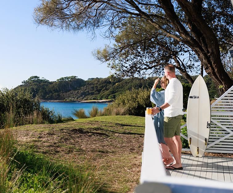 The resort is located on the NSW South Coast in the peaceful coastal town of South Durras. Perfectly positioned between a sparkling lake, ocean beaches and rich forests, you’d be forgiven for thinking you’d stumbled onto your own little paradise. With the town surrounded by national park, native animals are never far away so you can get a glimpse of wallabies, goannas, parrots and cockatoos on a daily basis. For a touch of active sightseeing, strap on the sneakers and take a walk to Wasp Head to spy golden beaches, hidden bays and ancient cliffs.